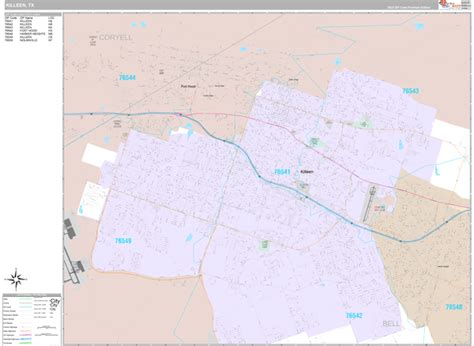 KilleenTemple, TX Metro Area Zip Code Wall Map Basic Style by MarketMAPS from www.mapsales.com